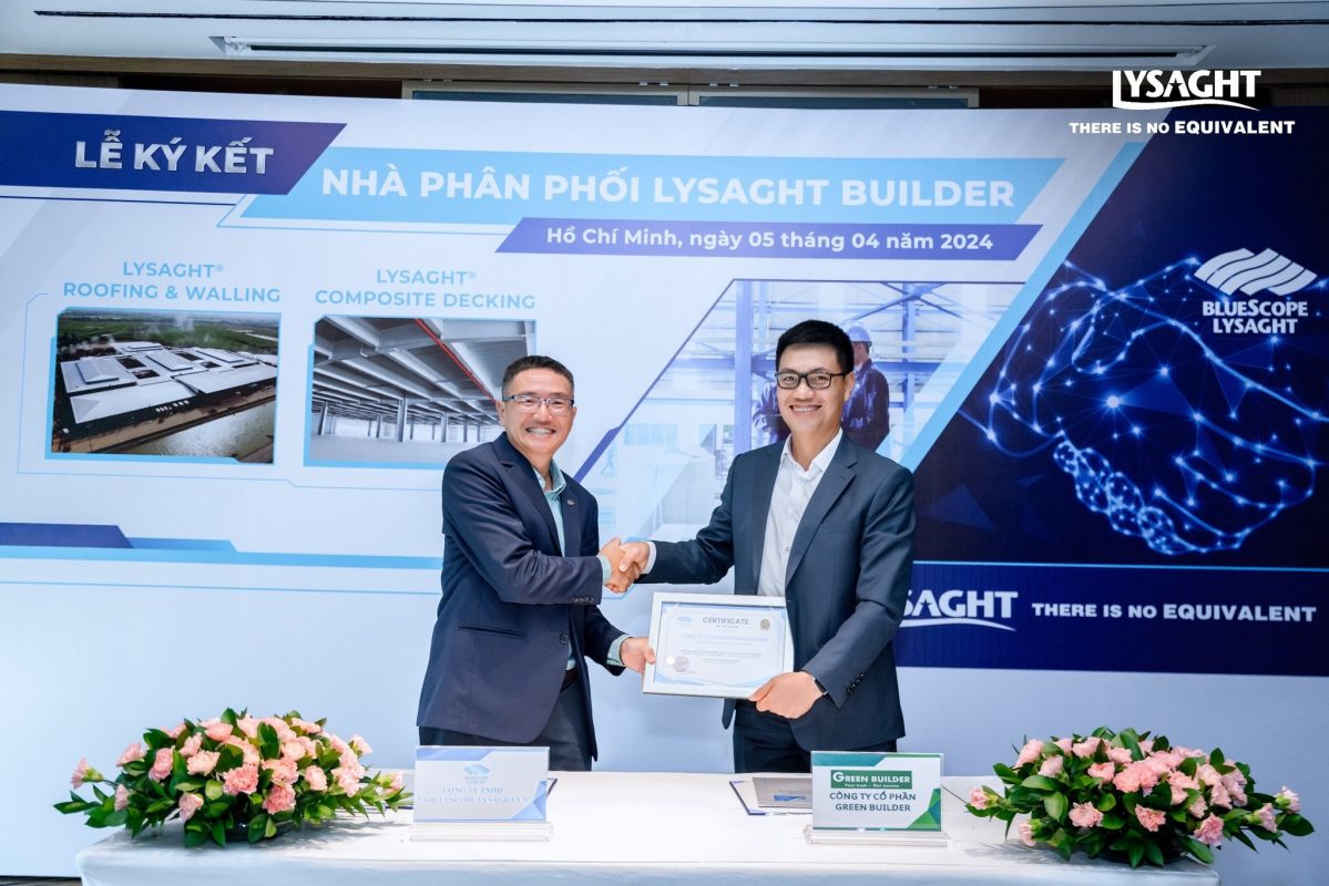 Với mong muốn nâng cao chất lượng dịch vụ và sự an tâm toàn diện cho khách hàng, Ngày 5/4/2024 tại Tp. Hồ Chí Minh, Green Builder đã làm lễ ký kết với NS BlueScope Lysaght, hai bên cùng nhau phối hợp phát triển dịch vụ Lysaght Builder – trọn gói giải pháp tối ưu giá trị cho các công trình.